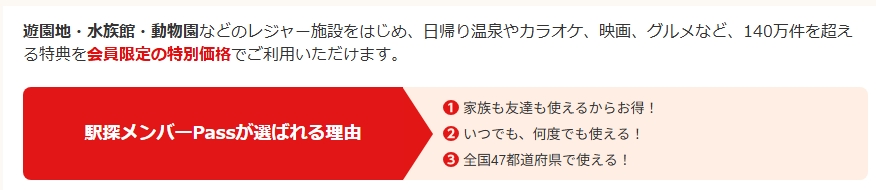 駅探メンバーPassの大きな特徴は、利用できる優待の数の多さです。飲食店やカフェ、レジャー施設、宿泊施設、ショッピングなど、全国140万件以上の施設やサービスで割引やクーポンが利用可能です。